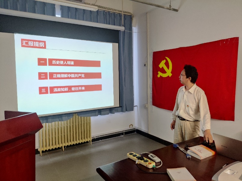 本次活动由两部分组成,首先是由支部成员程养春同志给大家做题为《加强党史学习的必要性》的汇报。程养春从“历史使人明鉴”、“正确理解中国共产党” 以及“温故知新,继往开来”三个方面出发,给大家讲述了中国共产党发展的历程、我们为什么要学习党史以及如何学习党史的问题。中国共产党是在磨难中成长起来的,其成长史就是一部奋斗史。在革命年代,无数共产党人怀揣坚不可摧的意志与同落后腐朽抗争到底的决心,在失败中奋起,在挫折中前进,谱写了救国存亡的壮丽史诗。在新中国成立以后,中国共产党同广大人民团结一心,艰苦奋斗,从站起来、富起来,再到强起来,创造了一个又一个中国奇迹。