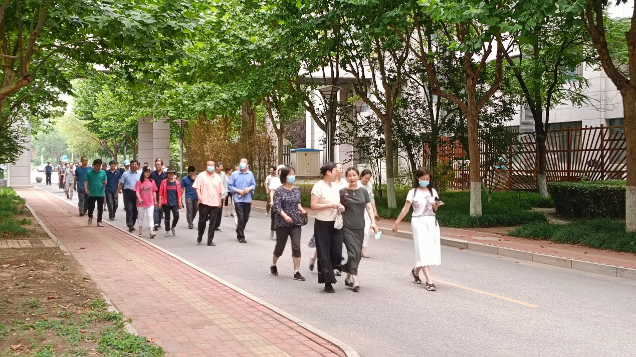 中午12点40分,学院教职工在主楼西广场集合,长走在欢愉的氛围中开始了。本次长走路线旁绿树成荫,环境宜人,大家一边感受清新的空气和午后的阳光,各位老师在欢声笑语中交流工作、畅谈生活,既锻炼了身体,又增进了感情。