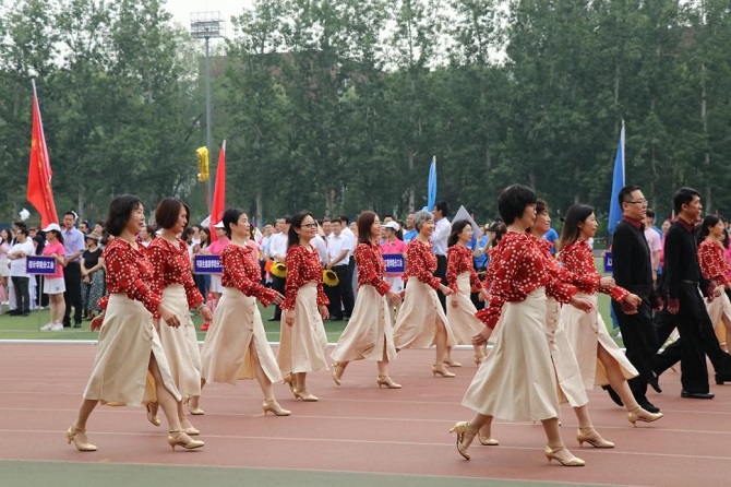 迎着初夏明媚的阳光,伴随着激昂奋进的《运动员进行曲》节奏,运动会开幕式各代表队入场式拉开序幕,他们穿着整齐的服装,喊着嘹亮的口号,迈着坚实的步伐向主席台走来。
