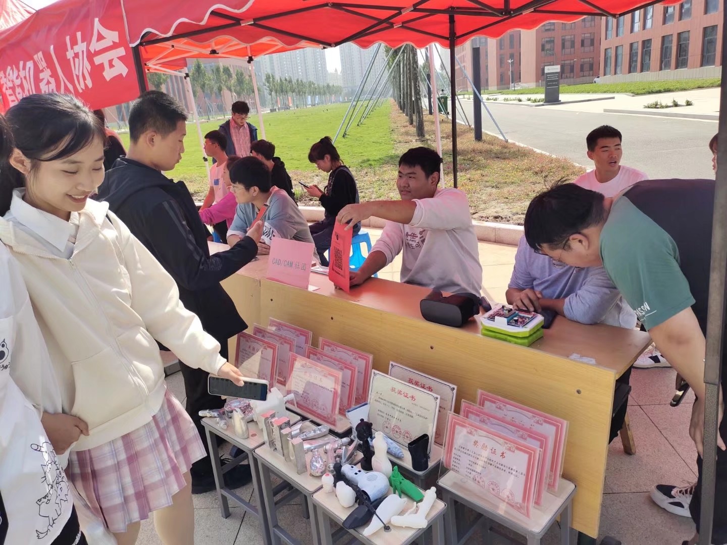 2021年9月29日,在线买世界杯平台社团纳新活动在学校行政综合楼前顺利进行,本次纳新活动在校团委与学院团总支的大力支持,以及社团联合会的全力协助下,规模空前,热闹非凡,甚至连那深秋的寒意也被同学们的热情所冲淡。本次活动世界杯官网有智能机器人协会、汽车营销社团、CAD/CAM交流协会、数控交流协会4个专业学习社团参与。