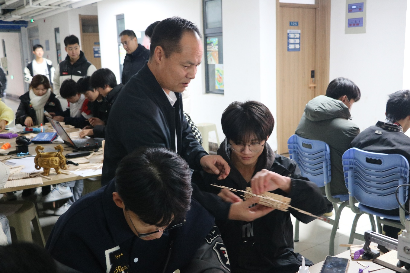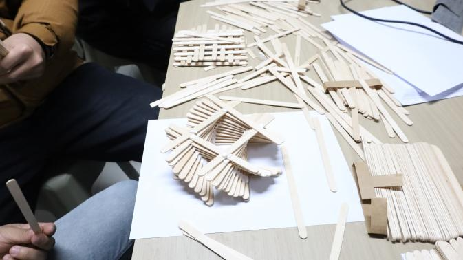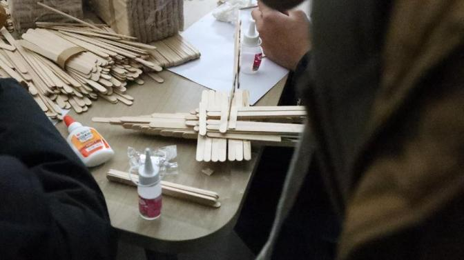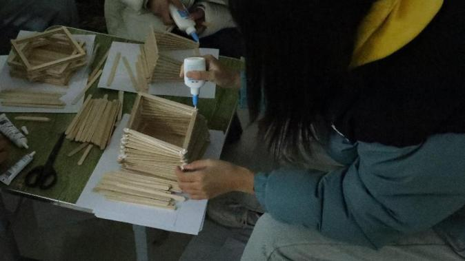 2024 年 11 月 28 日,在线买世界杯平台提前布置好现场,并准备了A4纸、雪糕棍、白乳胶、手锯等手工材料等待同学们的到来,同学们在活动开始前陆续进场进行活动签到,并耐心听取主持人详细的讲解活动规则。