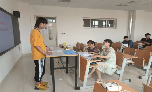 毕业论文答辩是大学生全面展示自己的勇气、才能、智慧、反应和口才的最佳时机。参加答辩的同学早已准备就绪,等待大学期间最后一场实战性的考验。论文答辩采用面对面问题的形式进行,一方面是考察同学们对自己研究作品框架与内容的熟悉程度,另一方面,考察同学们对专业知识的掌握程度及心得体会。面对老师的各种提问,同学们沉着冷静,回答简明准确,虽然仍有不足,但是都得到了老师们的充分肯定。