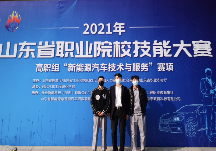 12月11日,在线买世界杯平台教师田振龙、杨素芳指导的参赛学生宫诚、赵冬晨在2021年山东省职业院校技能大赛高职组“新能源汽车技术与服务”赛项中荣获三等奖。