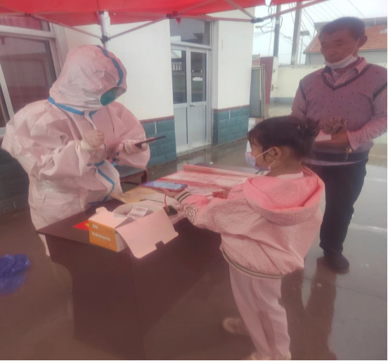 早上5点,田文静老师按照村委的要求来到村委会,正在布置场地时,突然一场大雨倾盆而下,给核酸检测带来了诸多的不便,医护人员、党员干部、志愿者冒雨坚守,核酸检测按时开始,为了加快核酸检测速度,需要一名能快速学会扫码的同志,村长问队伍里面有没有党员,田老师举手示意,村长亲自在她背后写下了“我是党员,田文静”,田老师感到非常荣幸。短暂的培训以后,田老师接过了给村民扫码的任务,群众检测队伍整齐、井然有序,齐心坚守撑起了一张“疫”往无前的守护伞。田文静老师作为党员,充分发挥了党员的模范带头作用,积极投入到疫情防控的志愿服务中去,给世界杯官网师生做了良好的榜样。