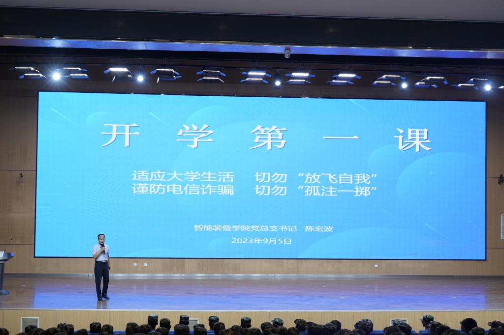 2023年9月5日晚,世界杯官网在图书楼一楼报告厅,开展“开学第一课”讲座,讲座由党总支书记陈宏波老师主讲,全体2023级大一新生参加。