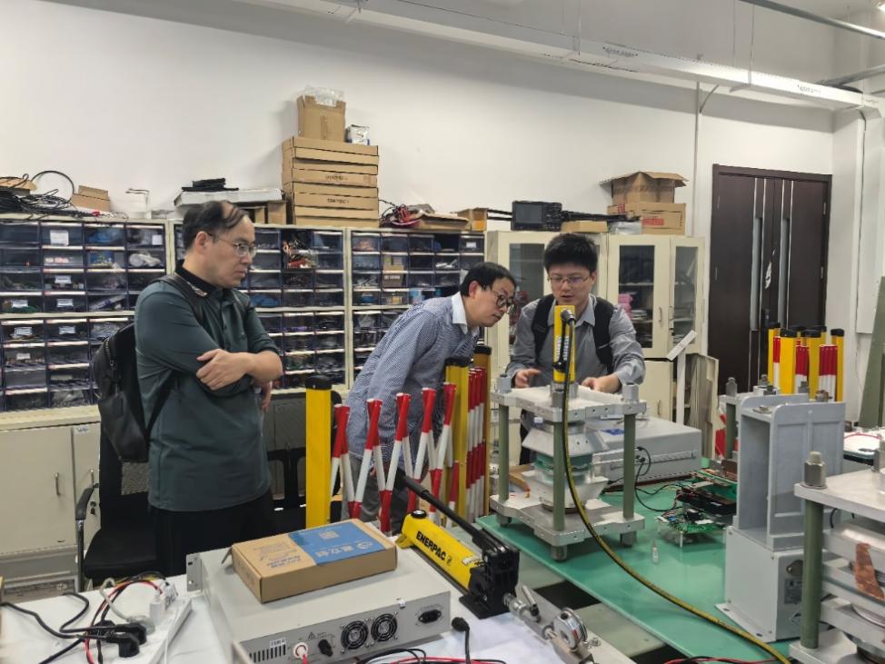 报告当天,吉兵博士与先进输电团队师生展开深入交流座谈,听取博士生代表所做研究内容汇报,给出指导建议,并在团队教师带领下参观新能源电力系统器件及柔性装备实验室,详细了解实验室压接型器件电流分布状态非侵入感知实验平台、器件封装设计及芯片筛选实验平台的相关情况。