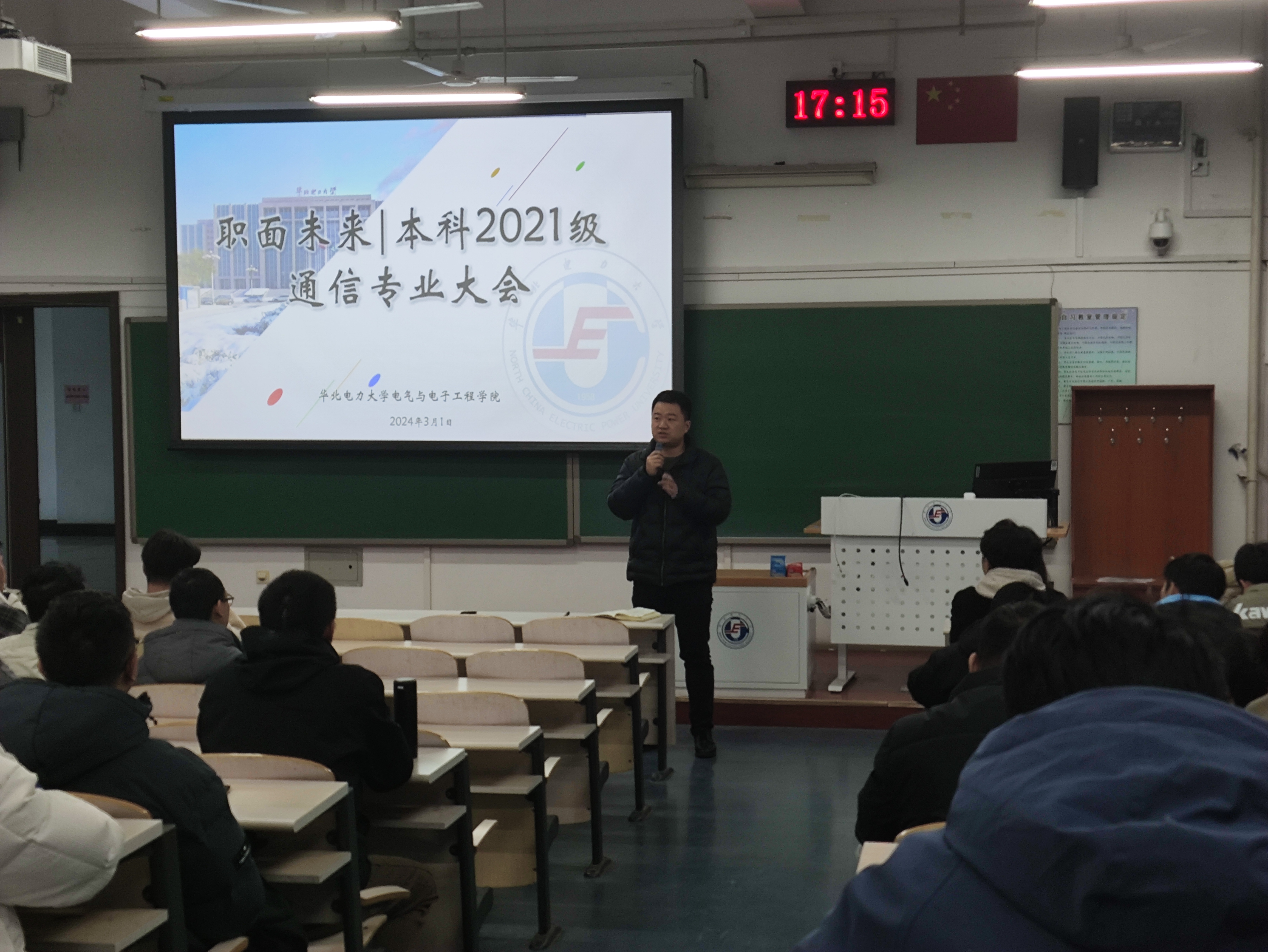 为进一步加强学风建设,帮助学生在关键时间节点明确生涯规划,2024年3月1日下午16时,世界杯体育官方网站本科2021级召开“职面未来”之通信工程专业大会。学院党委副书记王栋梁,本科2021级辅导员张欣烨、孙伟,班主任姚夏元、杨春萍以及本科2021级通信专业全体学生参与会议。