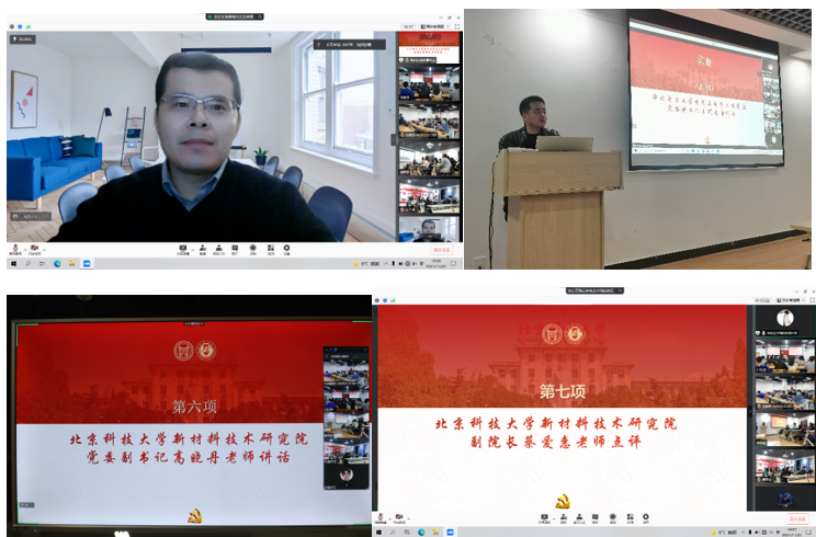 为深入贯彻学习党的十九届六中全会精神,加强基层学生党支部建设,11月23日晚19-21时,世界杯体育官方网站研电2101班党支部与北京科技大学新材料技术研究院新材硕2102班党支部以线下兼线上的方式开展了“建党百年,强国有我,致敬光辉榜样”联合主题党日活动。北京科技大学新材料技术研究院党委副书记高晓丹、副院长蔡爱惠、研21级辅导员杨雨月,世界杯体育官方网站党委副书记王硕、副院长徐衍会、研21级辅导员谢雨柔参加了会议。会议由新材硕2102班党支部书记许婧主持。