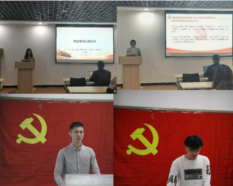 接着研电2101党支书刘宇翔、新材硕2102党支副书刘越奇围绕支部的基础情况、建设活动以及工作计划进行简要介绍,并表达了深入沟通交流的意愿。研电2101班党支部成员孙逸萌和郝琪、新材硕2102班党支部成员白廷帅和畅向五分别跟大家分享了学习《中国共产党第十九届中央委员会第六次全体会议公报》的心得体会。他们深入学习了党的十九届六中全会精神,并且结合自己所学的专业以及实际经历,深刻的认识到了新时代青年应该肩负起时代重任,努力奋斗,为祖国的繁荣昌盛贡献自己的力量。