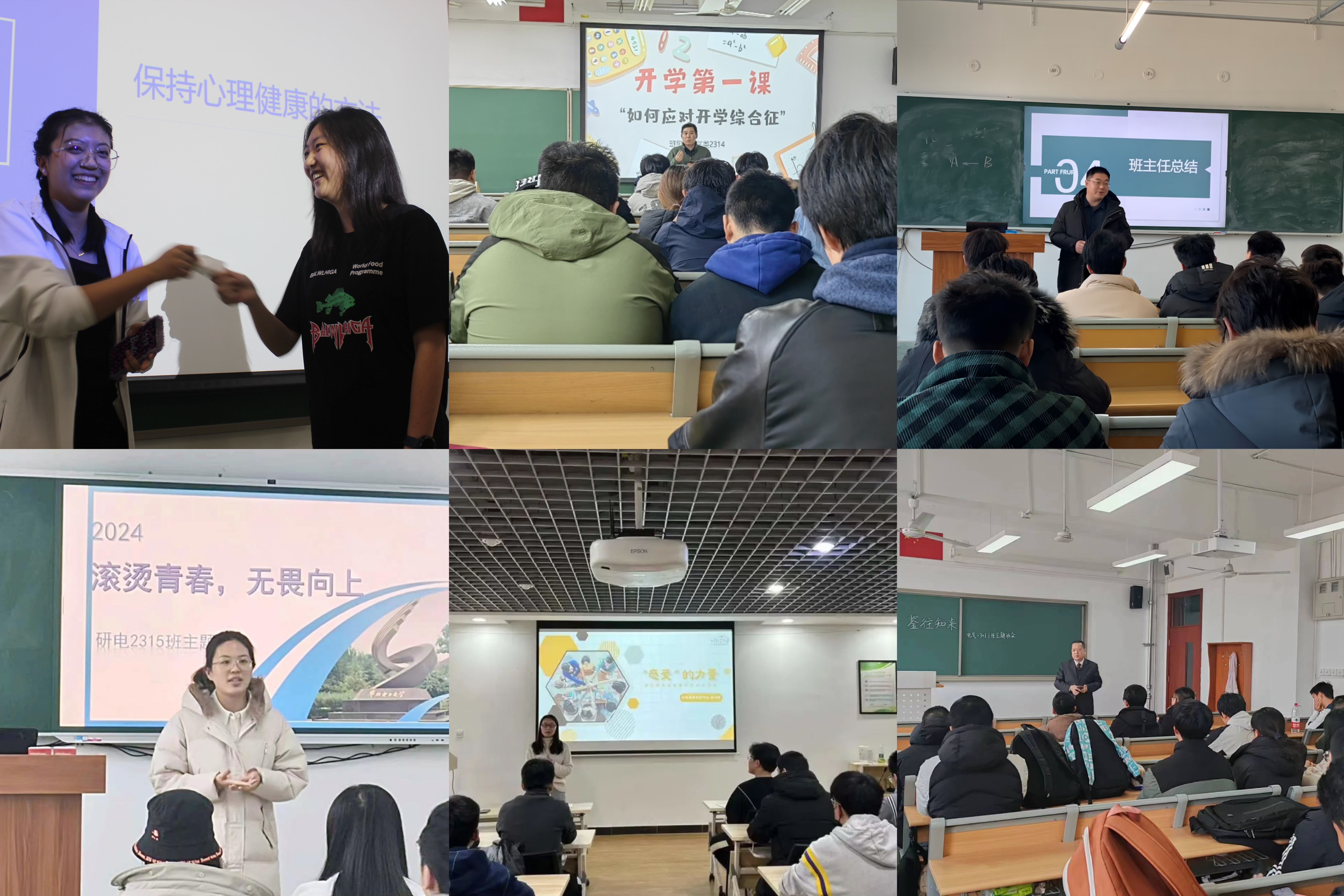 稳心理,护成长。为促进学生心理健康成长,塑造健全人格,各年级班主任老师们基于同学们的现实心理需求,多措并举促进心理健康,引导同学们深入了解心理健康的重要性,推动心理育人工作精准落地,进一步为心理育人工作夯实基础。博电2160班邀请学校心理健康教育中心余小霞老师开展了“以心汇智,从心出发”心理文化沙龙活动。余老师从人的情绪种类出发,为同学们讲述了隐藏在情绪之下的生理表现、主观体验和外部行为,透过情绪来认识核心自我,了解自身压力状态和身体状况的系统知识。研电2217班邀请学校心理健康教育中心杨丽华老师以“压力小解锁”为主题,分析了压力对个体成长的影响,并分享了一系列应对压力的实用方法与技巧。通信2201班组织心理辅导小游戏,并在游戏过程中启发大家用合理途径积极排解不良情绪。