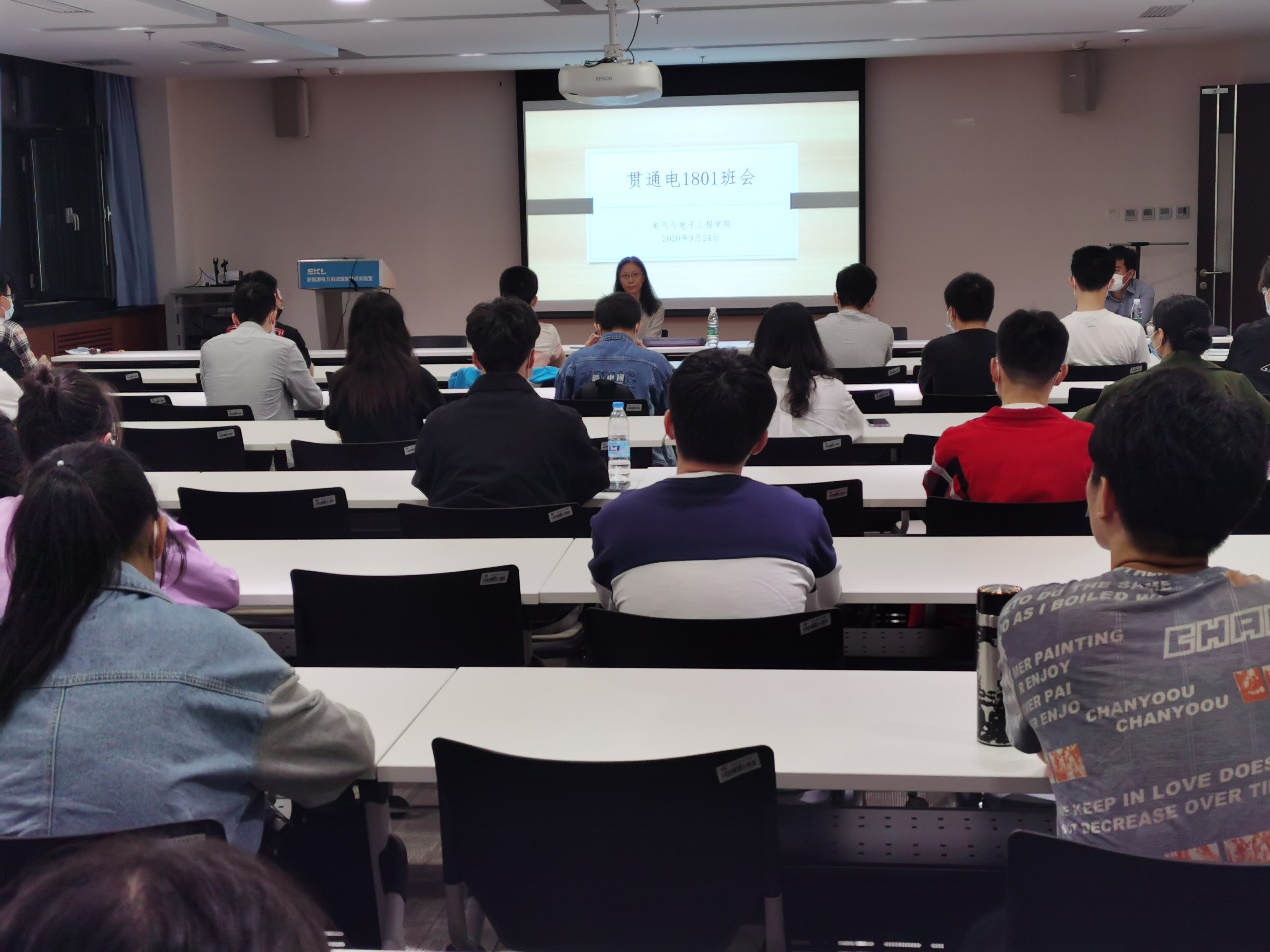 9月24日晚,大学副校长、学院院长、贯通电1801班班主任毕天姝老师出席班级班会并与全体学生座谈交流,学院党委副书记王硕、本科2018级辅导员马腾、孙智参加。