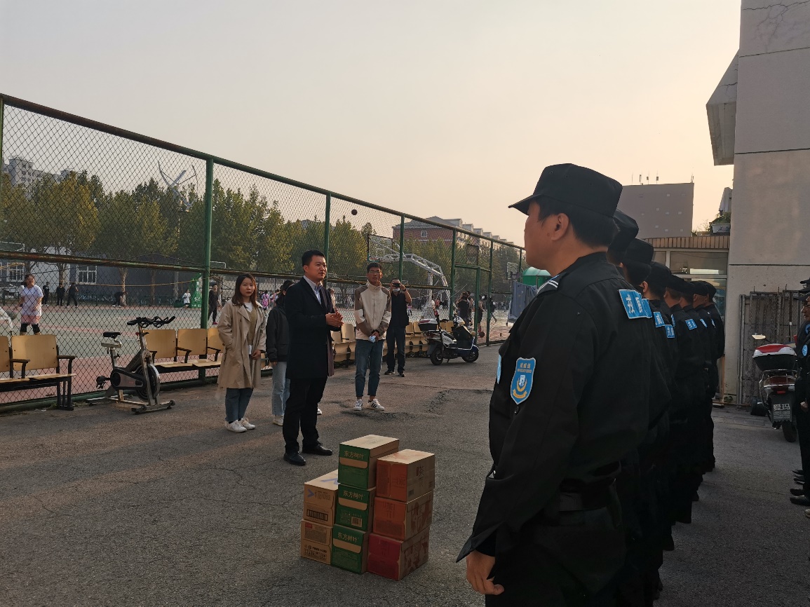 王栋梁表示,在疫情防控常态化背景下,学校保安队员“舍小家、为大家”,严格落实学校要求,全力守好校园安全第一道防线,为保障校园秩序和安全稳定做出了突出贡献。他代表学院师生对全体保安队员的辛勤付出致以衷心感谢。