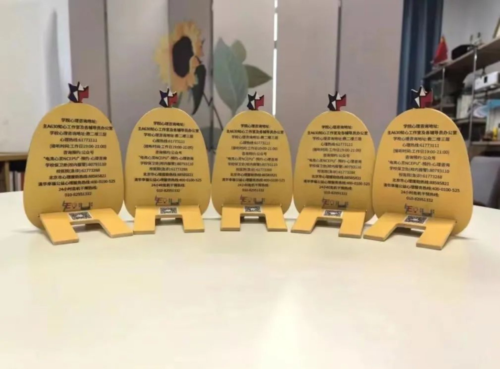 手机支架正面印制有“世界杯体育官方网站”“德才兼备、知行唯实”的字样,这不仅是对学院精神的传承,也是对师生们的⼀种鞭策和鼓励。通过这种方式,希望师生们能够时刻铭记学院的教育理念,努力成为堪当民族复兴大任的时代新人。⽀架背面印制有心理咨询室地址方式等详细信息,这是对师生们心理健康的⼀种关怀和提醒。在面对学习、生活压力时,希望⼤家能够及时寻求⼼理帮助,保持⾝心健康。小电鸡手机支架采用木质环保材料制作,既符合环保理念,也体现了学院对可持续发展的追求。我们希望能够引导师生们关注环境保护,共同为可持续发展贡献力量。支架特别定制了“吃瓜鸡”、“读书鸡”、“可爱鸡”、“博学鸡”和“干饭鸡”五种款式,让大家的手机支架充满个性!无论是在图书馆、教室还是宿舍,小电鸡都能为大家提供方便。希望它可以守护大家的健康心态,陪伴大家度过每一个快乐时刻!