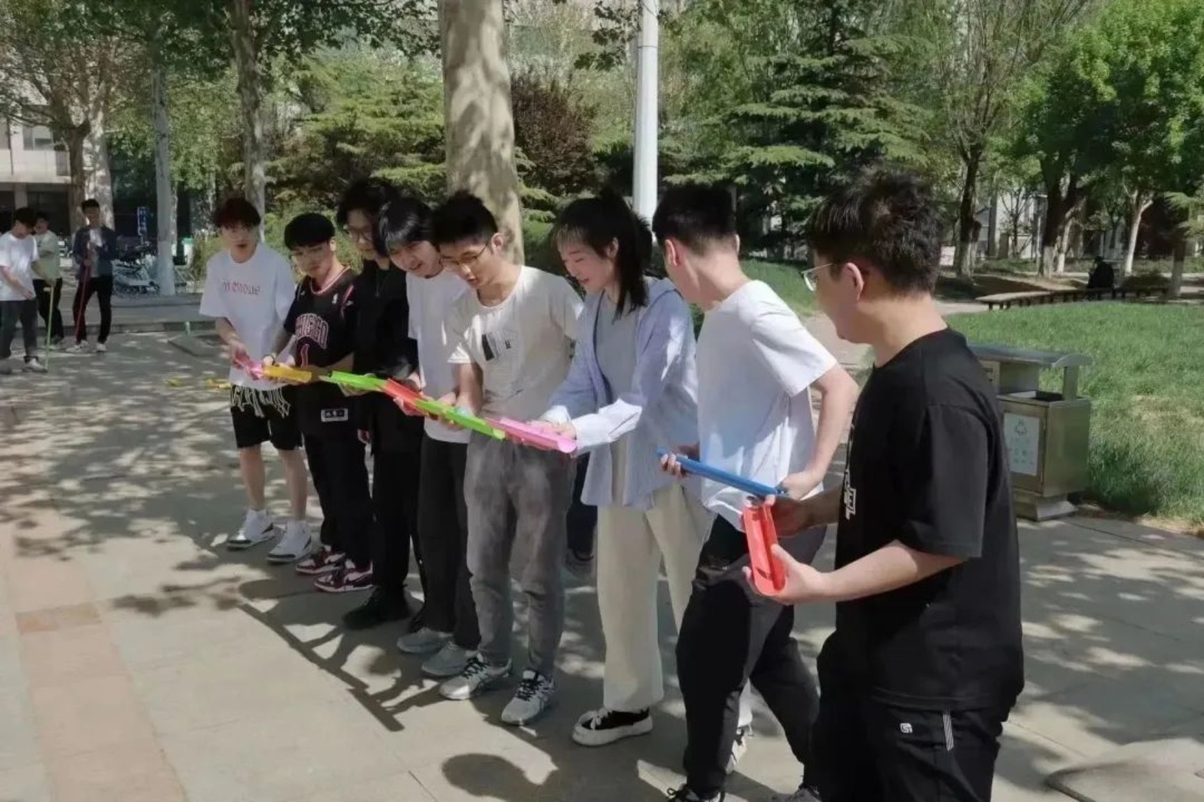 为提高班级凝聚力,丰富校园文化,号召已参训的心理委员带领班级同学开展“强心健体·共向未来”素拓活动。在“不倒森林”、“能量传输”等多个游戏过程中,同学们相互配合协调,在素质拓展中享受乐趣、增强体质。