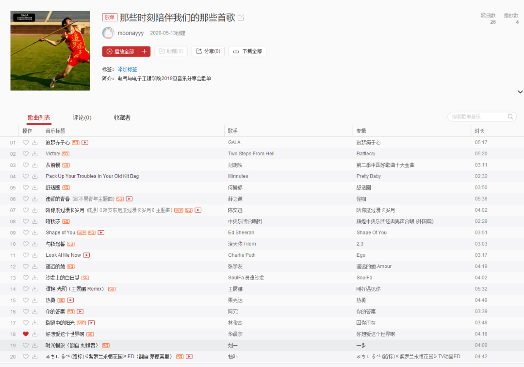 另外,此次活动中来自同学们的歌曲推荐已经整理成网易云歌单,有兴趣的同时可以在网易云搜索歌单“那些时刻陪伴我们的那些首歌”,一探究竟哦~