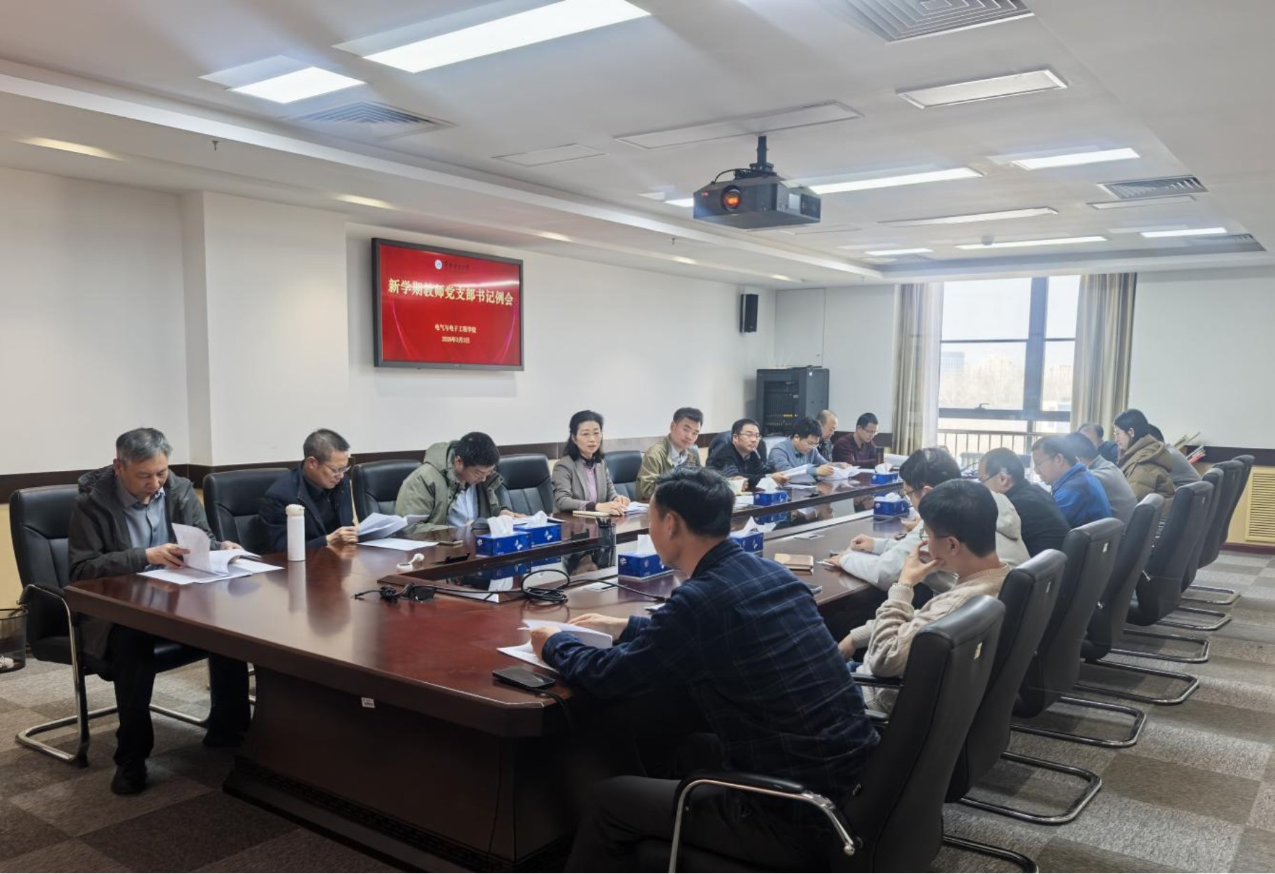3月3日,学院召开教师党支部工作例会。会议就新学期各支部教师思想动态等情况进行摸底,确保新学期教学、科研工作有序衔接。会上详细传达了学校第七届第八次教代会的核心内容、重要部署和精神实质,介绍了教代会关于教育教学改革、学科发展等方面的工作要求。同时,会议对教代会代表进支部宣讲工作进行专项部署,明确宣讲重点与安排。党委书记卜春梅提出各支部要发挥好战斗堡垒作用,带领全体教师切实将思想和行动统一到学校的决策部署上来,在新学期中展现新面貌、实现新作为。