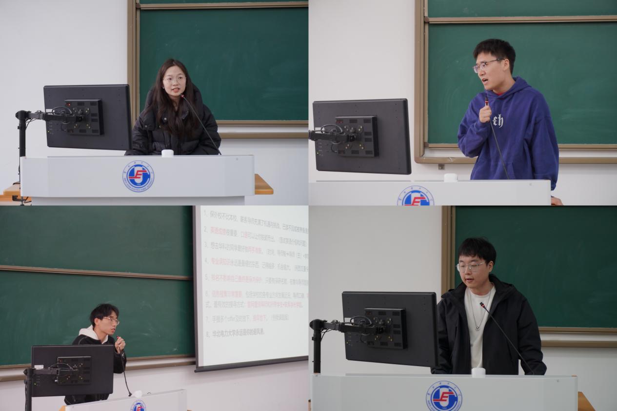 本次会议特邀请到4位“上岸”学长学姐为同学们分享考研、保研和备考国网、南网的各种实战经验。研电2304王聪怡从制定分数线目标、各科目复习流程及课程推荐、平衡考研与生活等全面细致地分享了自己的考研经历;电气2002蔡瑞以自身经历介绍了保研的具体流程,通过分析各大高校的夏令营标准向具有保研能力和保研意向的同学们提出建议。电气2008冯向阳从基本情况、招聘流程、复习计划三个方面向同学们介绍了自己备考国网的经历;电气2003刘雨昊讲述了备考和面试南方电网的详细准备流程,同时鼓励同学们无论是备考哪个省份的电网都要全程发力,保持积极自信的状态,以最好的精神面貌迎接笔试和面试。