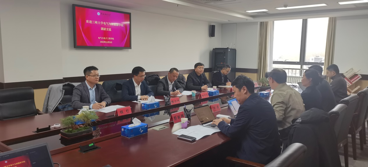 12月5日上午,三峡大学电气与新能源学院党委书记兼副院长甘行元等一行五人到访世界杯体育官方网站调研交流。学院党委书记卜春梅、副院长(主持工作)齐磊、党委副书记王栋梁、新能源电力系统全国重点实验室副主任彭跃辉、院长助理贾科参加接待。