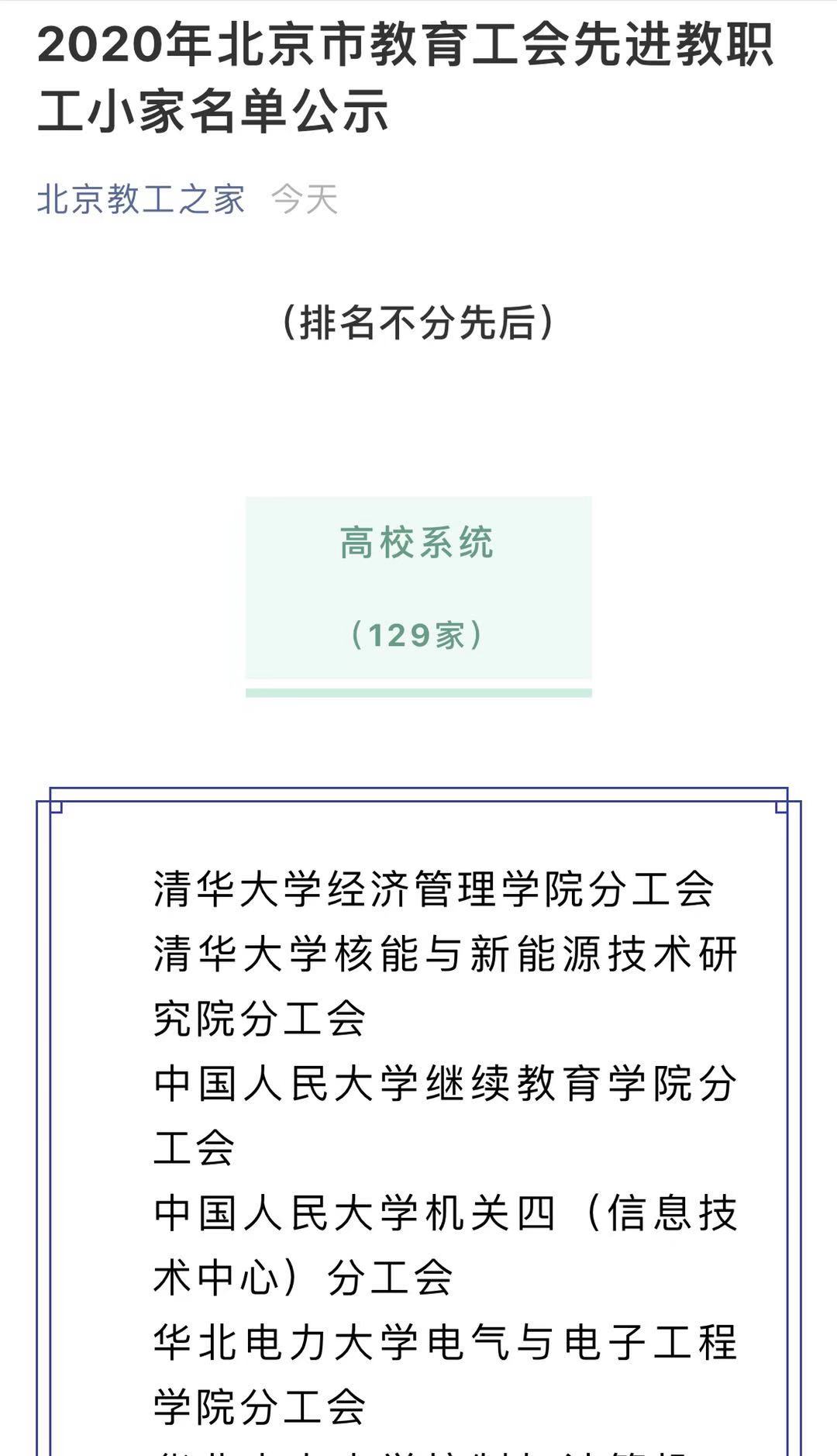 近日,世界杯体育官方网站分工会在学校工会的正确领导下,在学院党政领导班子的大力支持下,经过全体工会会员的共同努力,获评2020年北京市教育工会先进教职工小家。