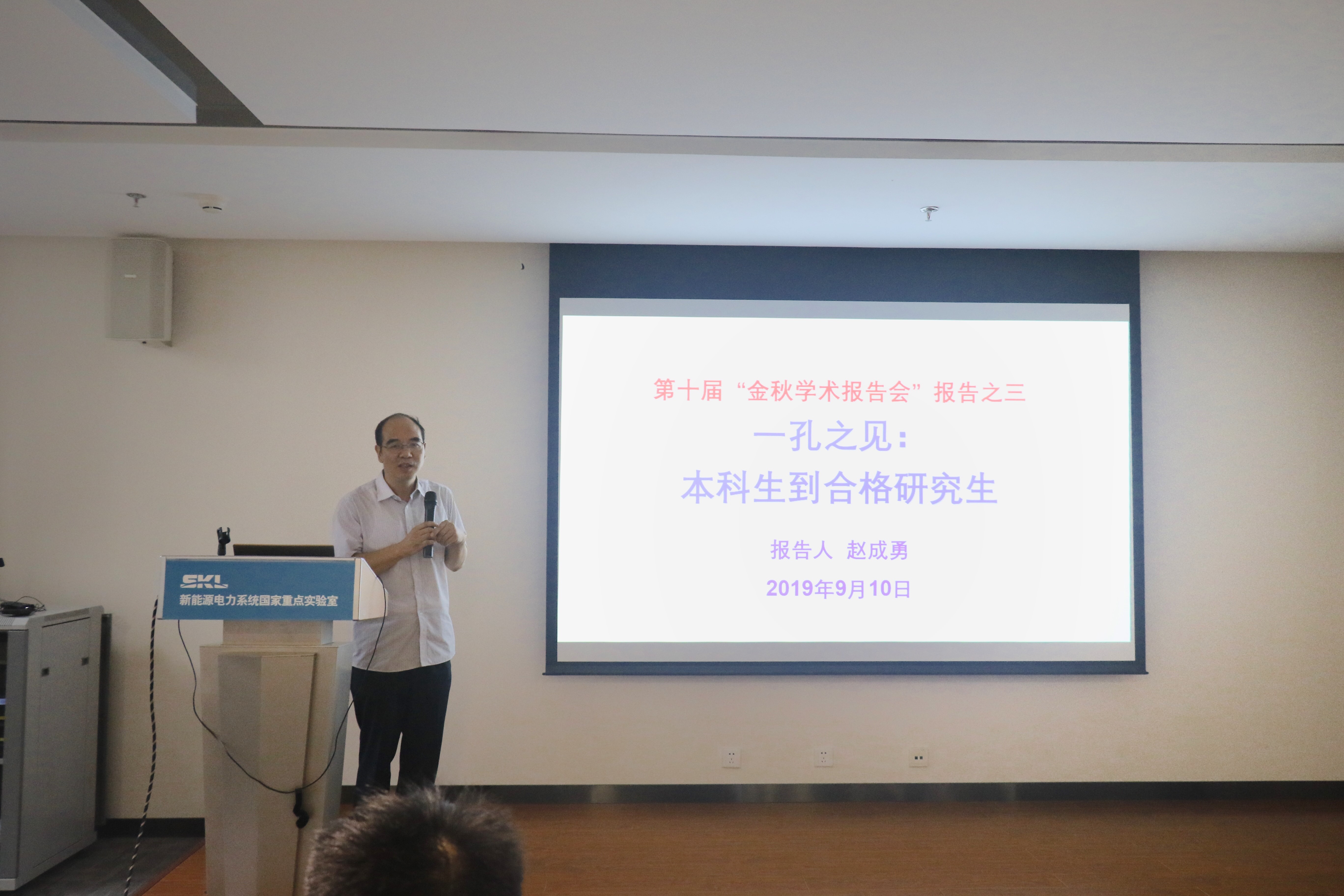 9月10日下午2点,第十届金秋学术报告会在主楼A322报告厅举办,新能源电网研究所全体教师及世界杯体育官方网站相关师生参加了此次报告会,会议由袁敞副教授主持,报告会历时3小时,圆满落下帷幕。此次报告会还邀请了外校电气工程领域的知名学者——清华大学姜齐荣教授、中科院电工研究所李子欣教授。侧重教学相长,世界杯官网入口赵成勇教授作了有关如何培养学生,如何做好科研工作的主旨报告。两名优秀硕士生代表冯佳耀和吕煜则分享了过去一年的科研成果。