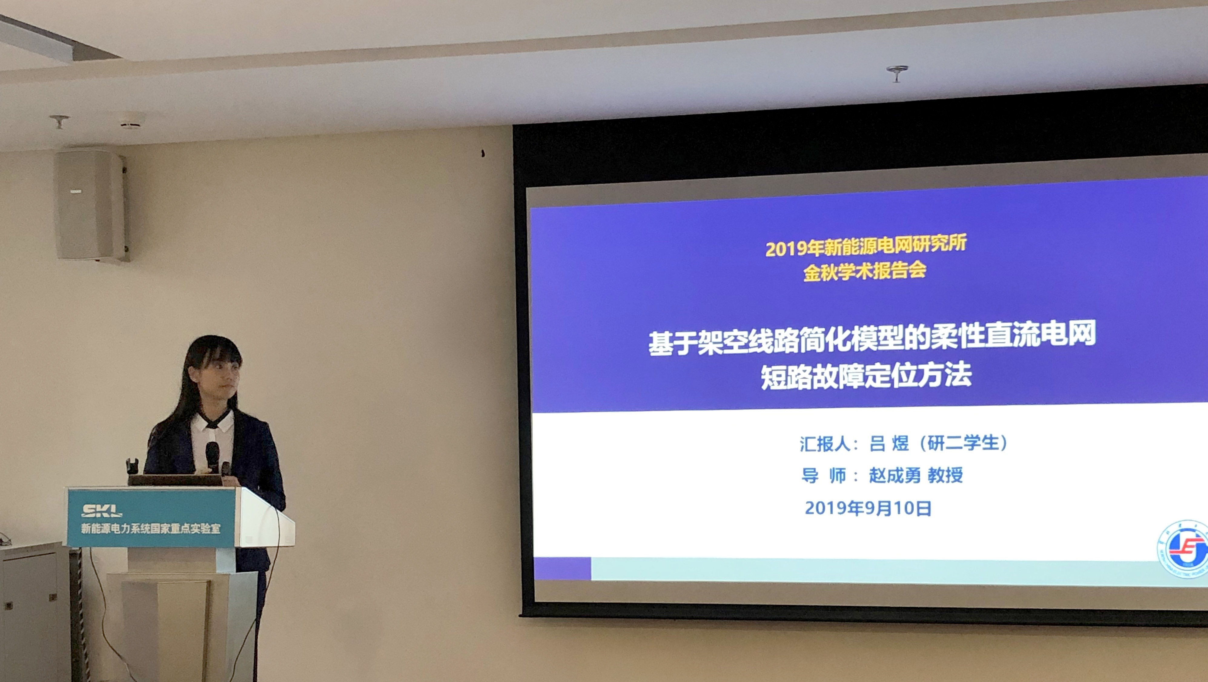 师从赵成勇教授的硕士研究生吕煜的报告题目为“基于架空线路简化模型的柔性直流电网短路故障定位方法”,她首先展示了自己近两年的科研成果,之后向大家分析了论文从无到有的过程,介绍了写作经验。最后,她分享了研究生生涯中的心得体会,如何从优秀的本科生蜕变为优秀的研究生。