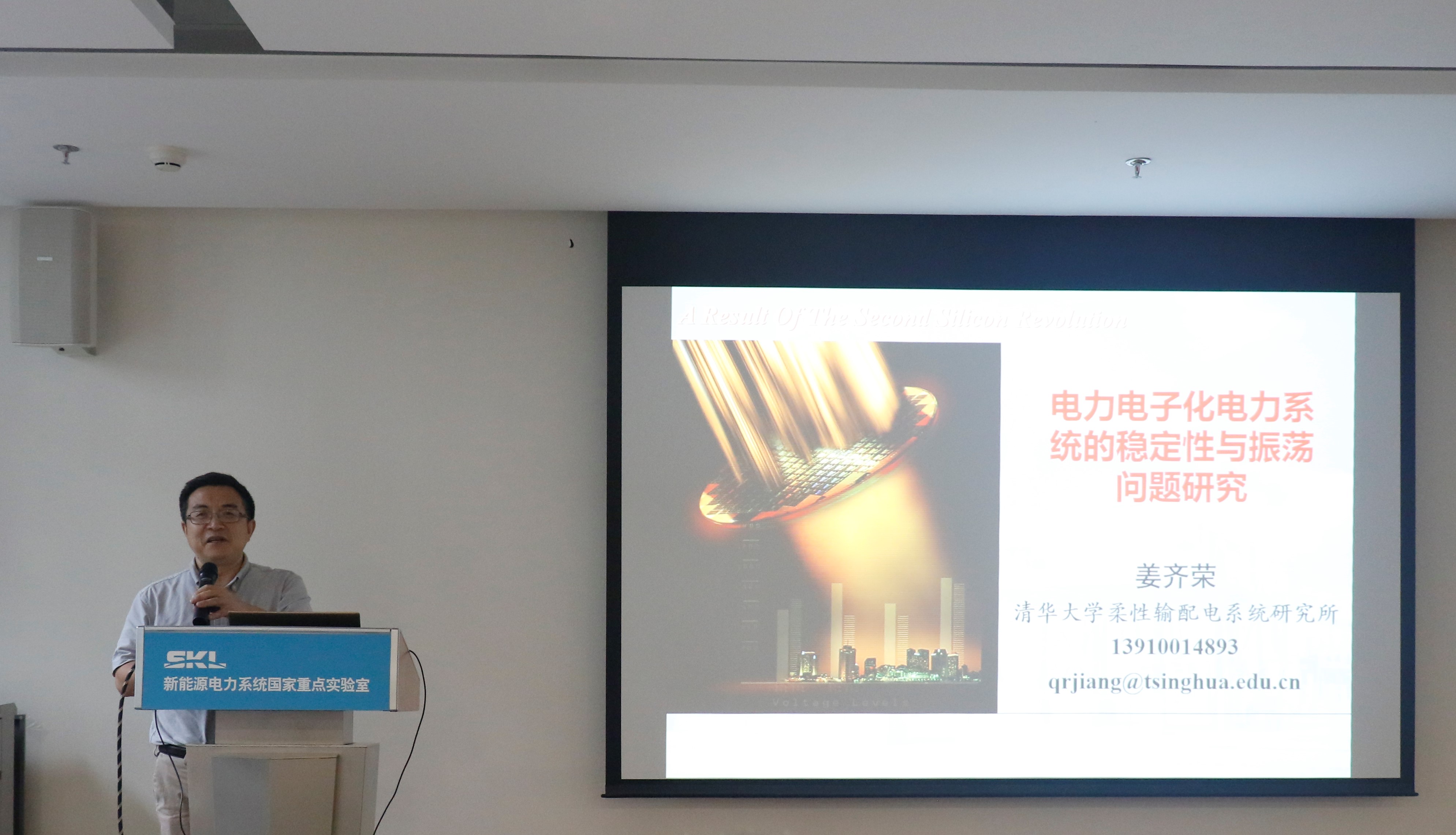 紧接着,中科院电工研究所李子欣教授针对“高压大功率电力电子技术及若干应用研究”做了第二场报告。李教授就电力电子与现代电力系统、MMC型柔性高压直流输电技术、电力电子变压器及其在实际工程中的应用做了介绍,并分享了自己参与南方电网的南澳三端柔直工程的调试经历。