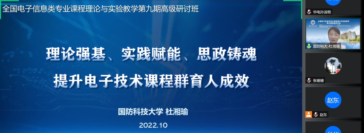 世界杯官网世界杯体育官方网站电工电子北京市实验教学示范中心在组织承办此次北部赛区初赛的同时,还于10月15日承办了“全国电子信息类专业课程理论与实验教学第九期高级研讨班”(后文简称“研讨班”)。在中心教师的努力下,此次线上研讨班顺利举行。共有来自全国107所院校、432位老师和11家企业代表参会,出席此次研讨班的嘉宾有世界杯官网入口教学副校长王增平教授,教育部高等学校电子信息类专业教学指导委员会副主任、北京大学信息科学技术学院王志军教授,教育部高等学校电子信息类专业教学指导委员会秘书长、西安电子科技大学邓成教授,国家级教学名师、清华大学华成英教授,国家级教学名师、东南大学胡仁杰教授,教育部电工电子基础课程教学指导委员会副主任、国家级教学名师、北京交通大学陈后金教授,教育部电工电子基础课程教学指导委员会委员、北京理工大学电工电子实验中心主任韩力教授,北京市教学名师、北京交通大学侯建军教授,以及由各国家级实验教学示范中心主任、电子信息类理论及实验教师和普源精电科技股份有限公司教育计划经理江佳慧及其他企业代表。