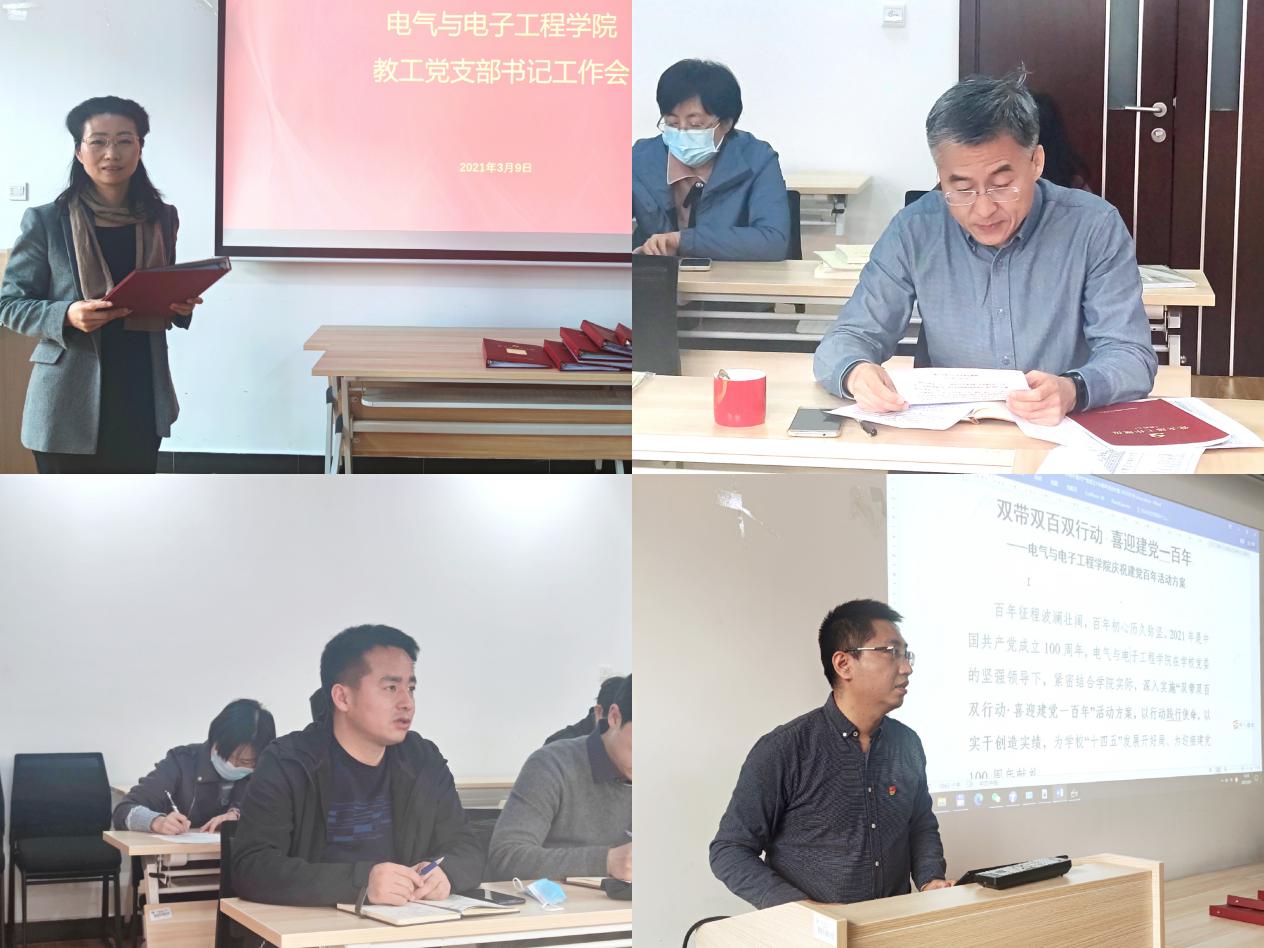 为贯彻落实学校2021年春季学期工作部署会议精神,持续提高党支部建设质量,在常态化疫情防控下继续加强党支部标准化、规范化建设,3月9日下午,世界杯体育官方网站在主楼A631会议室召开教工党支部书记工作会。学院党委书记卜春梅、正处级组织员张宝良、党委副书记王硕、学院党政办公室主任刘春磊以及各教工党支部书记参加会议。会议由卜春梅主持。