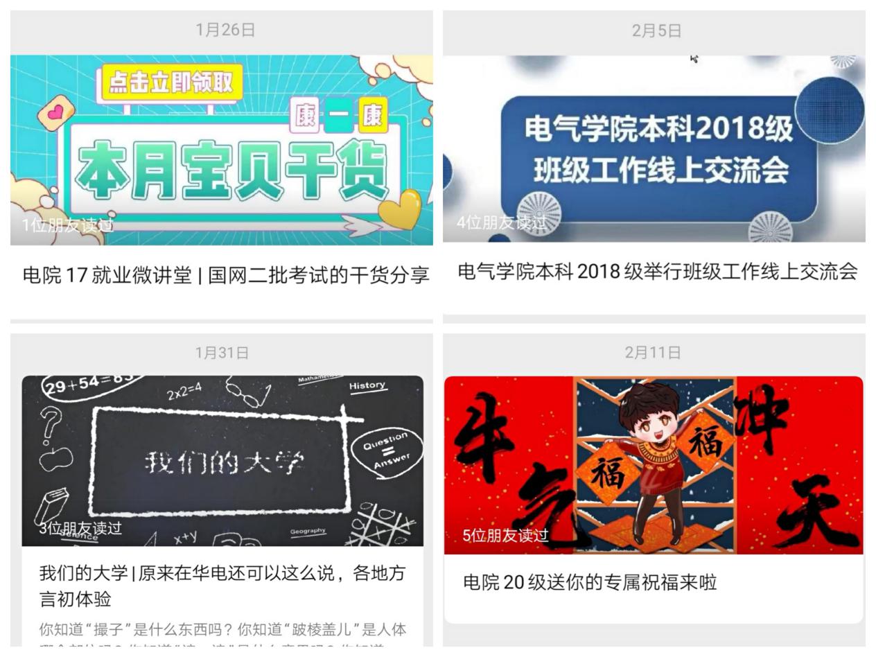 疫情当前,为了顺利开展假期相关工作,电气学院以年级和班级为单位,积极利用网络平台为同学提供服务和帮助,组织开展各类线上活动。本科2017级利用年级公众号,推出“电院17就业微讲堂”系列主题推送,邀请经验丰富的同学为大家分享备考国网、就业签约等相关经历,帮助学生更好地了解招聘信息和掌握求职技能;本科2018级举行班级工作线上交流会,辅导员、年级长、班长和团支书参会,各班充分总结了上学期各项工作,分享了工作经验,促进了班级之间互学互鉴,为下一学期的班级管理和建设打下更加坚实基础。本科2020级公众号开展了一系列趣味线上活动,如:春节vlog录制活动、各地方言体验活动等,给2020级的同学带来了一个充实丰富的寒假,加强同学互动交流,帮助同学更好地融入华电。