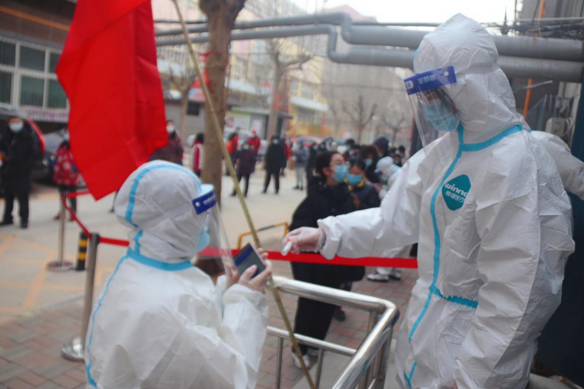 寒假期间,学院返乡学生主动向社区(村)报到,在做好自身安全防护的基础上,加入居住地疫情联防联控志愿者队伍,服从调配安排,发挥自身优势,全力辅助一线工作人员,协助开展排查登记、体温监测、文明劝导、卫生防疫、物资储备等工作,积极做疫情联防联控的生力军。2018级本科生党支部耿聪同志身处疫情严重的石家庄地区,在“我是党员我先上”的担当与责任感的召唤下,第一时间加入志愿者队伍,负责帮助医护人员进行相关信息采集以及秩序维护工作。由于所在社区实行中高风险管控,每两天进行一次核酸检测,并且社区中老幼居民居多,时常需要上门采集。她说,因为任务重时间紧,她和其他志愿者夜以继日地工作,非常辛苦,但作为一名党员,要发挥党员的先锋模范作用,积极参与到社区疫情防控的工作中来,尽自己的一份力量。