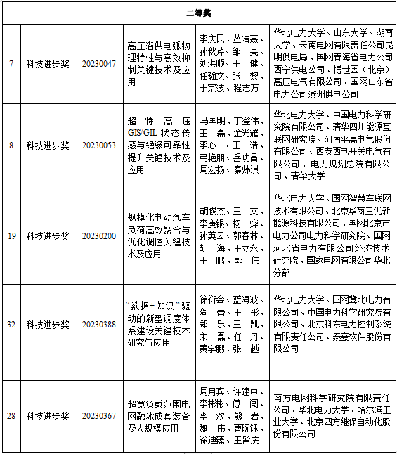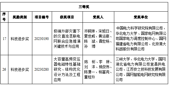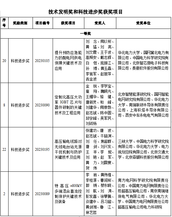 近日,2023年度中国电工技术学会科学技术奖正式揭晓,经中国电工技术学会评审委员会评审,共评出2023年度中国电工技术学会技术发明奖和科技进步奖获奖项目共计87项,其中一等奖22项,二等奖32项,三等奖33项。
