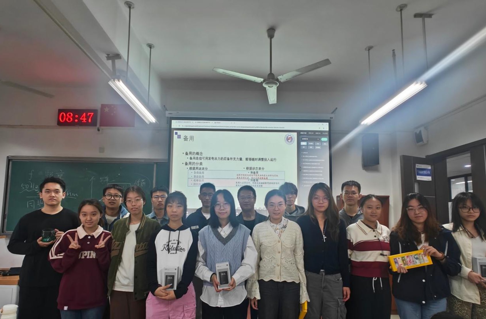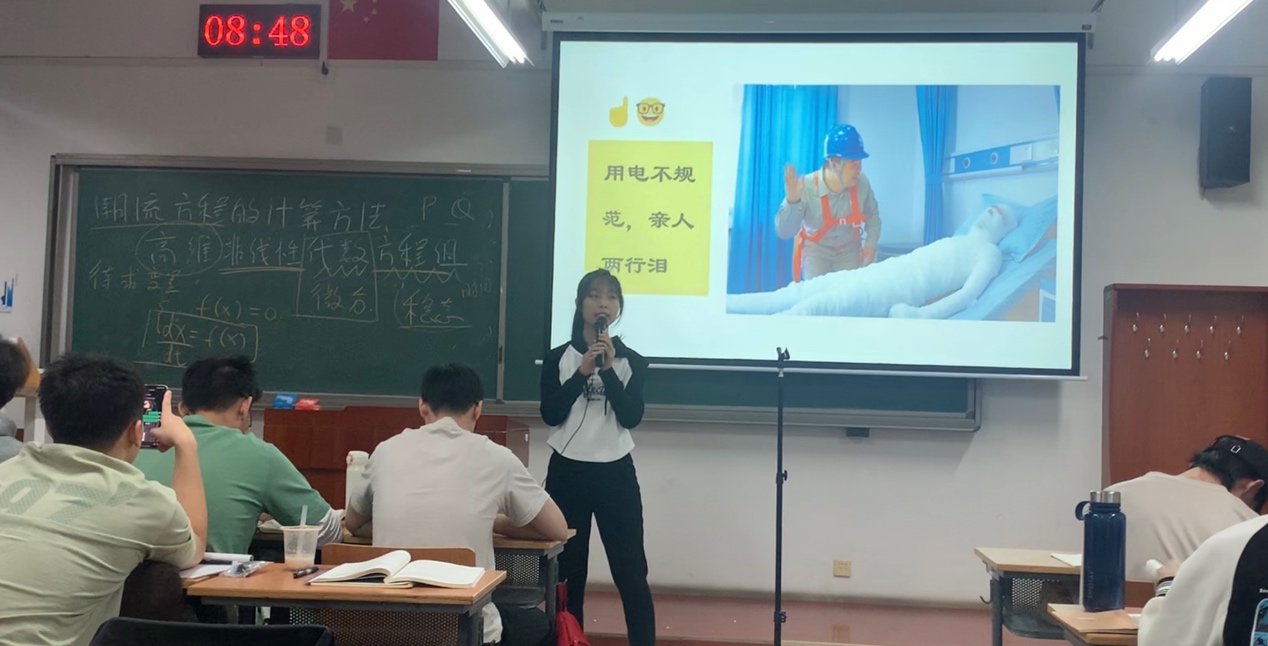 寄存器组解说题目是《基于人工智能应用下的新型电力系统发展的研究》,小组用新颖的方式,解说了人工智能在新型电力系统中的广泛应用前景,探讨新型电力系统与人工智能的现状,挑战和未来发展趋势。小组成员通过情景演绎的方式,与电分课程知识结合,与观众产生共鸣,给观众留下深刻印象。
