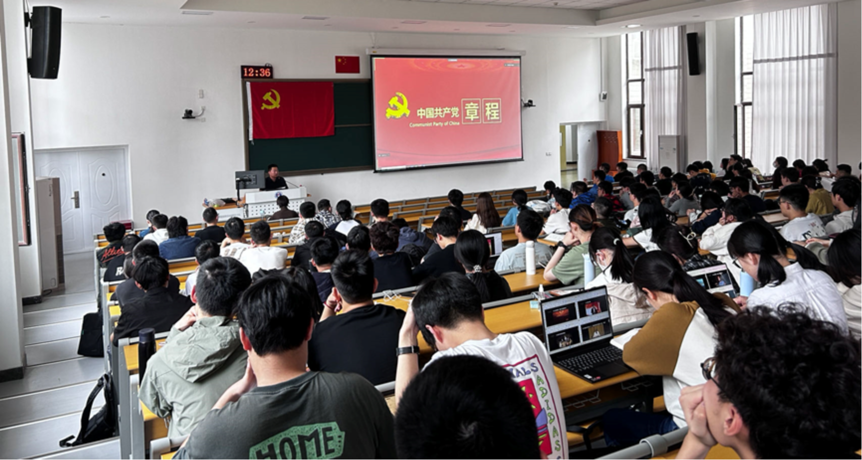 2023年5月4日中午,世界杯体育官方网站第55期入党积极分子培训班第二次党课在教一12阶举行。学院党委副书记王栋梁为全体学员系统详细地解读了《中国共产党章程》,辅导员王倩参加了本次党课培训。