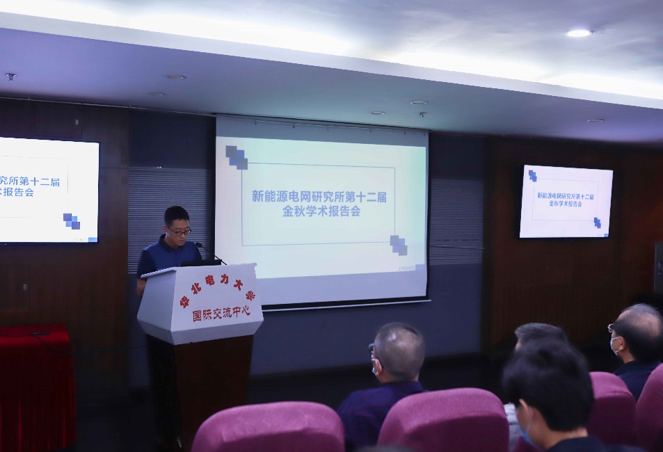 会议开始,主持人郭春义副教授介绍了与会嘉宾、老师及会议流程。首先,新能源电网研究所所长赵成勇教授致辞,赵老师介绍了新能源研究所的概况、教学科研情况、代表成果以及学生风采。赵老师向在座的各位师生讲述了举办金秋学术报告会的初心和意义,庆祝教师节的同时和大家进行交流与分享,形成良好的学术研讨氛围。