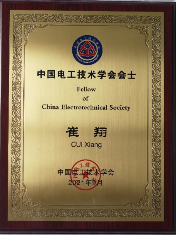9月25日,中国电工技术学会成立40周年纪念大会暨第十六届学术年会在北京召开,崔翔教授荣膺中国电工技术学会首批会士称号并获中国电工技术学会特殊贡献荣誉奖章。