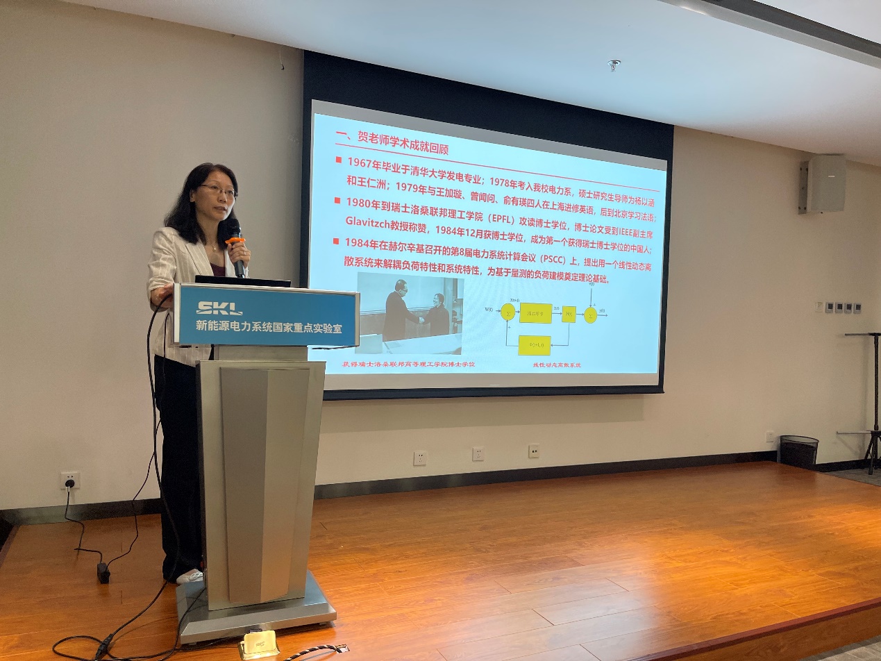 首先,毕天姝副校长作了关于贺仁睦老师荣获2021年“顾毓琇电机工程奖”的主题发言,从贺老师的学术成就、对电气学科发展的贡献、研究生培养情况、对学科发展及人才培养的启示四个方面进行了全面阐述。贺老师在负荷建模领域深耕 30 年,在低频振荡领域具有独到的见解,获得省部级科技奖励 6 项,成为华电有突出贡献的学科带头人和电力系统方向的标志性人物,培养了 29 名博士研究生,114 名硕士研究生,在电力系统规划、设计、运行和研究等领域发挥了非常重要的作用。2002年世界杯官网电力系统及其自动化学科被批准为国家级重点学科,学校实现了国家级重点学科零的突破,贺老师作为当时申请国家级重点学科的答辩人,为学科的发展做出了历史性贡献。