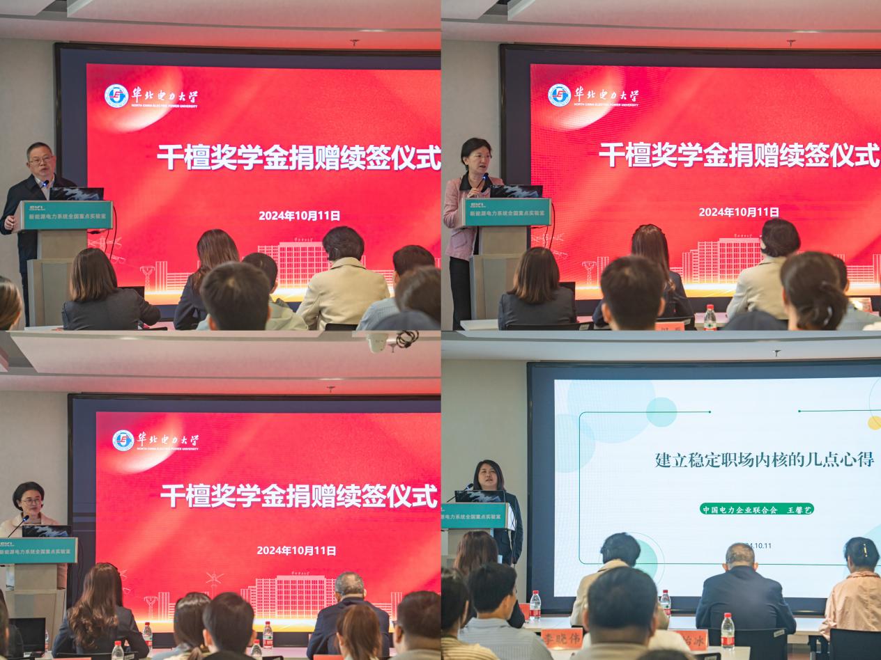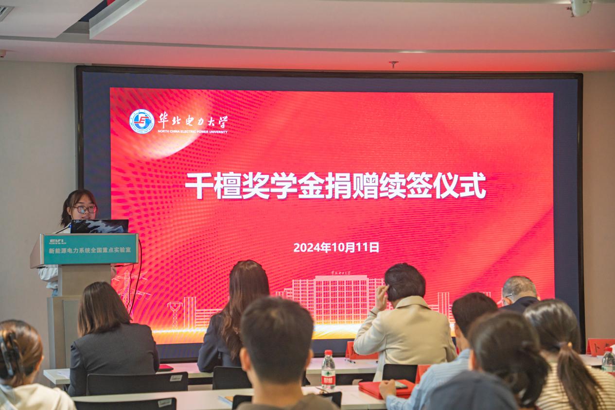 随后,千檀奖学金发起人07级校友杨薇介绍了奖学金的名称由来与设立初衷。奖学金的设立目标是全方位帮助到电气专业女学生,助力她们成为电力行业的中坚人才。