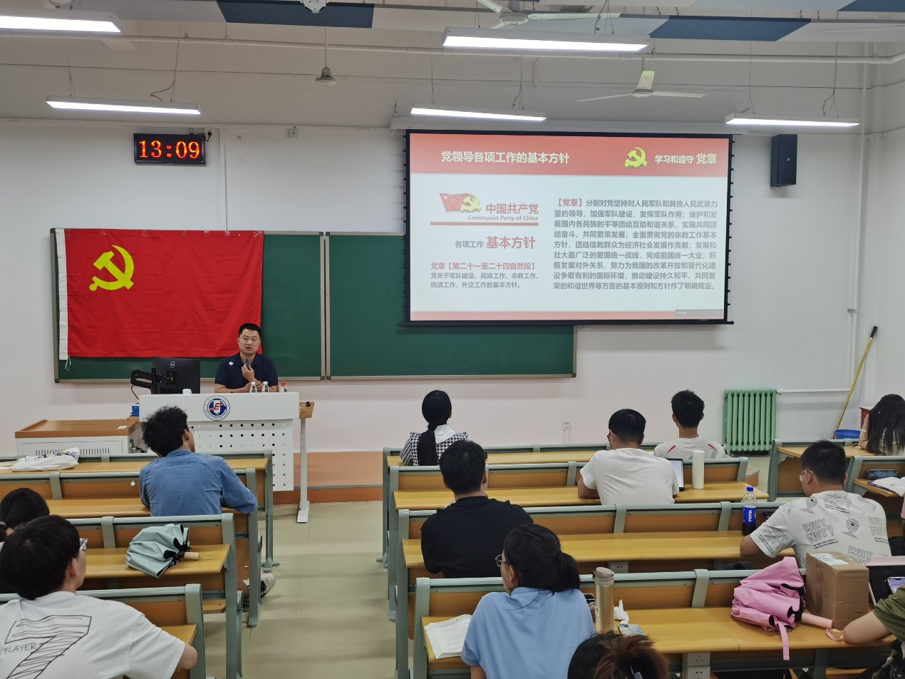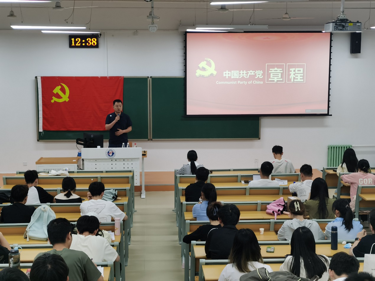 2024年5月15日中午,世界杯体育官方网站第57期入党积极分子培训班第三次党课在主B101举行。学院党委副书记王栋梁为全体学员系统详细的解读了《中国共产党章程》。
