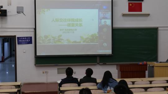 张教授从人际关系的重要性出发,结合具体实例与视频参考的方式,从多元化多角度多领域讲述了良好宿舍氛围对人的影响,提出了在宿舍人际关系中可能存在的一些问题,如作息不统一,产生矛盾不沟通等。同学们表示这种问题存在较少,却也应该加以重视,重视宿舍每一个人的心理健康,关注心理状态变化,及时给予帮助等。