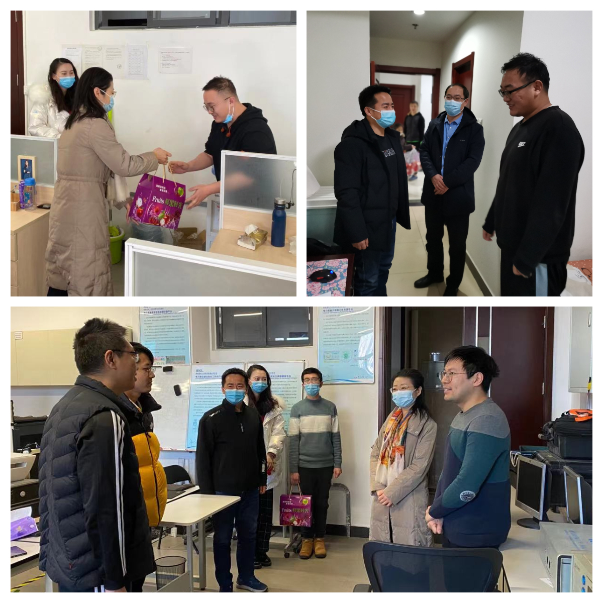 学院领导详细了解留校学生的学习生活情况,向他们致以新春的祝福,并送上学院精心准备的节日慰问品。“老家在哪里?”“是否订好了回家的车票?”“学习生活上还有没有什么困难?”每到一处,学院领导都关切询问同学们的留校原因和下一步打算,并嘱咐同学们要把安全放在第一位,严格遵守校园疫情防控的各项制度安排,认真做好每日上报和体温晨午晚检,有任何紧急情况都要第一时间联系导师和辅导员。学院领导还逐一询问了同学们的科研进展情况,鼓励他们充分利用好假期时间,安心学习,刻苦钻研,争取在牛年伊始便凭借多一分的勤奋,多一分的实干,获得学业上的丰硕成果与可喜收获。