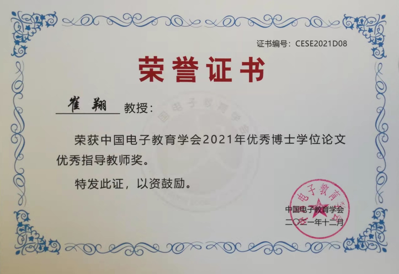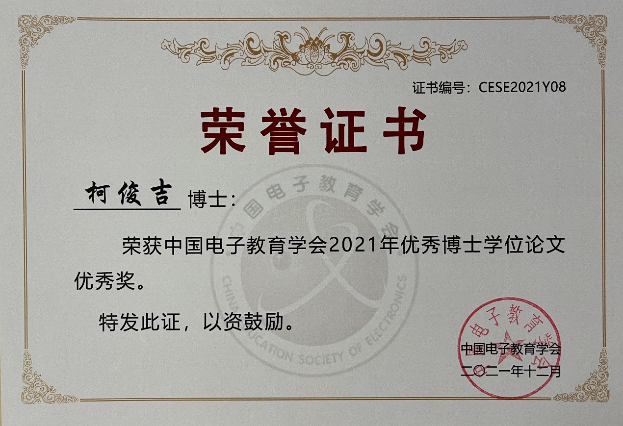 柯俊吉获中国电子教育学会优秀博士学位论文优秀奖