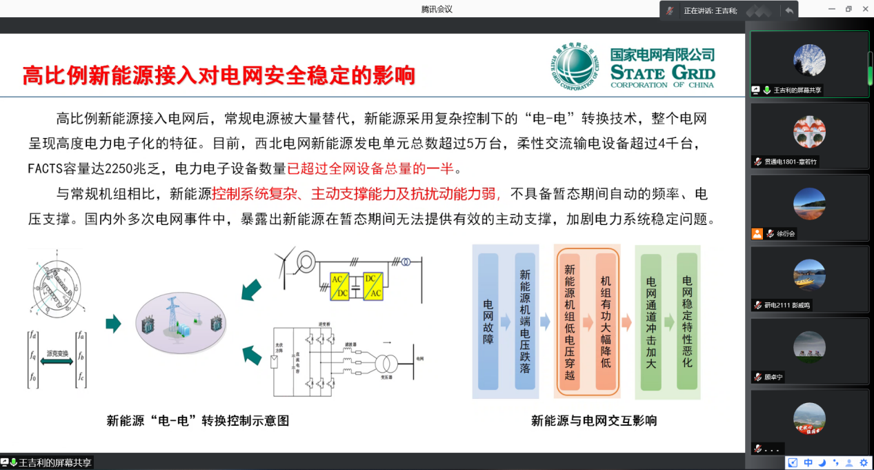 8月31日晚,世界杯体育官方网站邀请国网西北电力调控中心系统处处长王吉利作为嘉宾走进电力企业专家讲堂,讲座题目为大规模集中接入新能源暂态主动支撑性能提升的关键技术探索与实践,电气学院本硕博贯通班和优秀学生共80余人聆听了讲座。