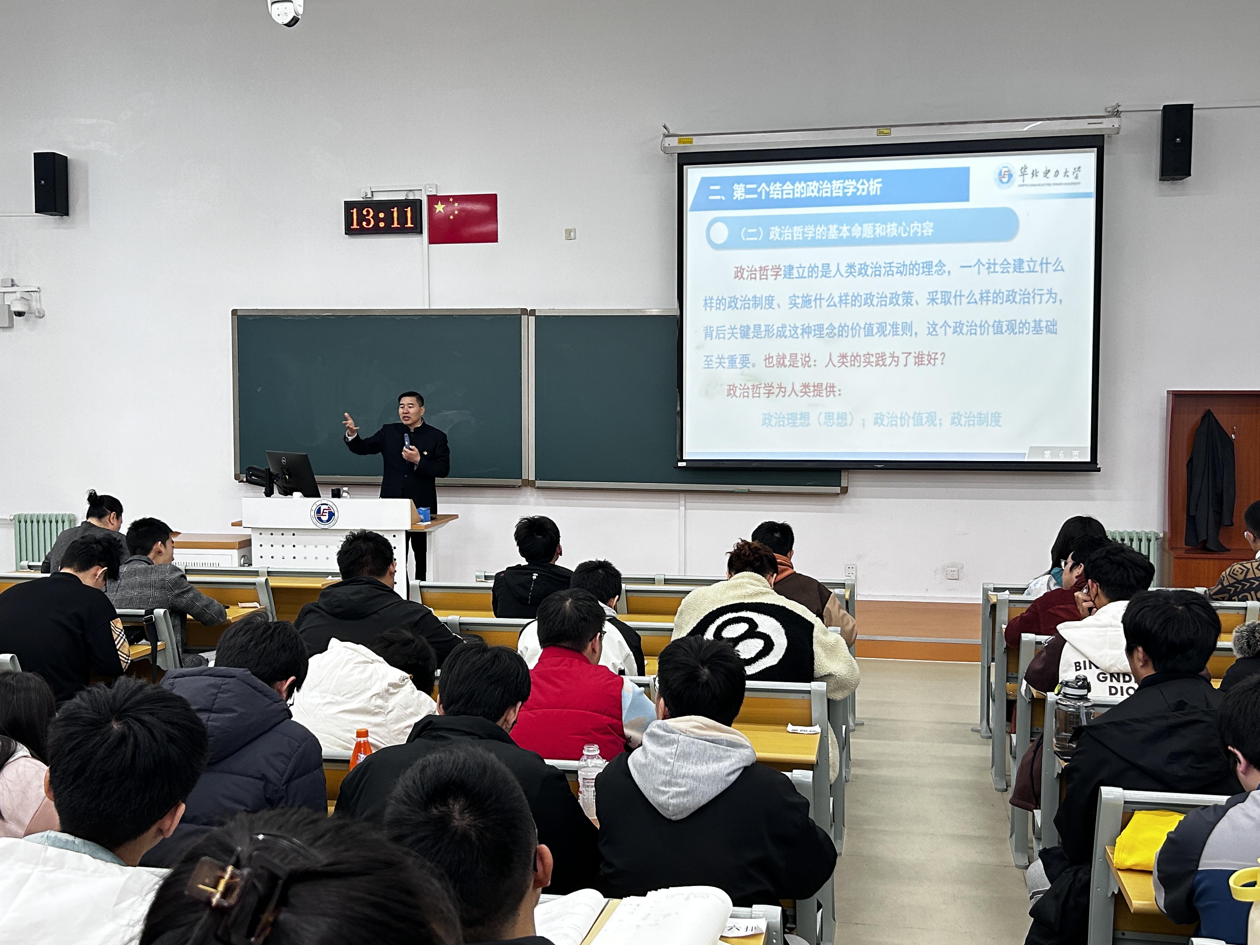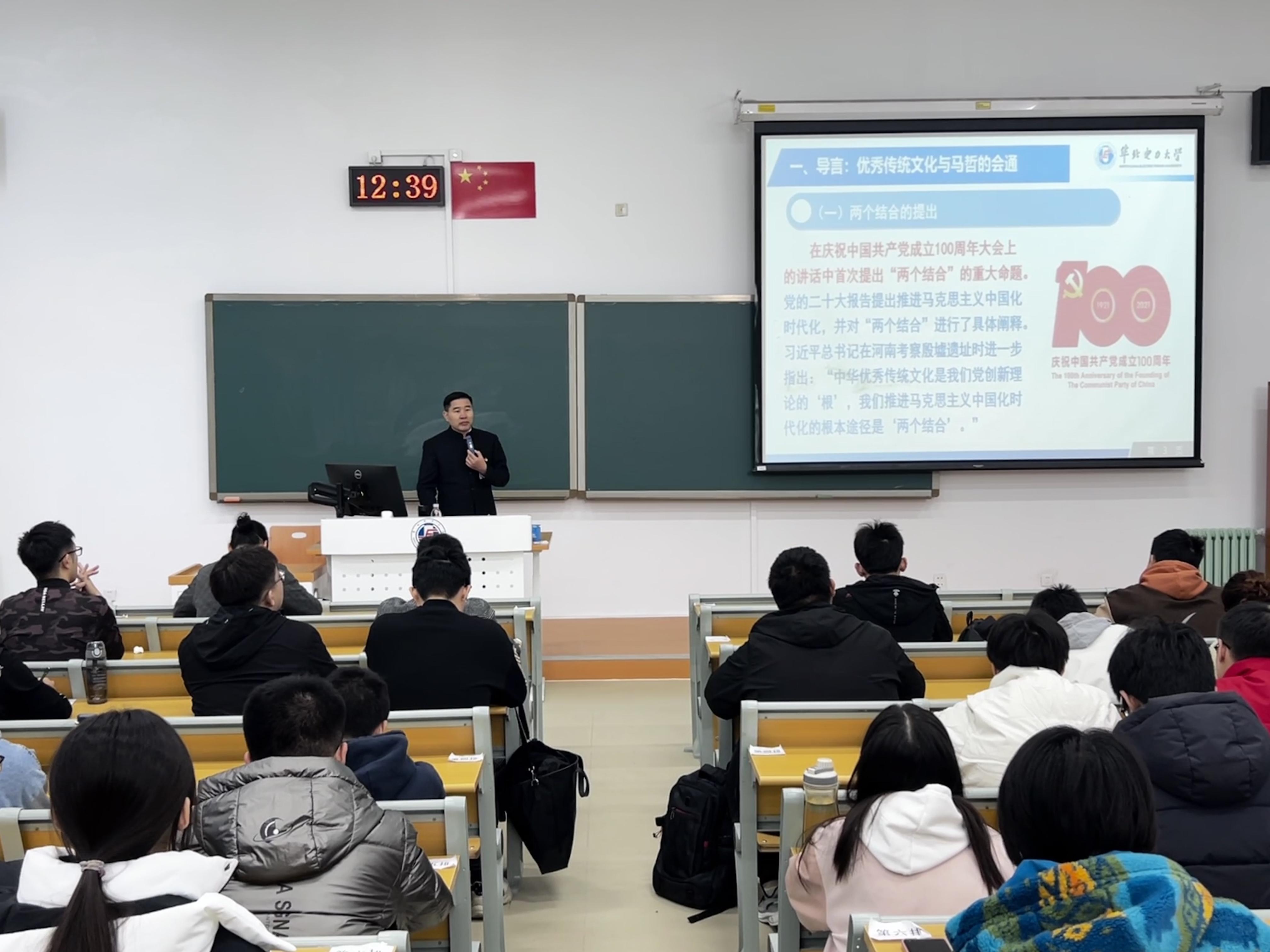 王伟围绕为什么要坚持马克思主义中国化时代化与“两个结合”,首先指出“两个结合”是实现马克思主义中国化时代化的内在逻辑和现实需求。其次,他着重介绍了“第二个结合”,深入分析并解释了马克思主义政治哲学与中华优秀传统文化的内在逻辑和彼此契合性。尽管经典理论常常显得晦涩难懂,但王伟运用幽默的语言和生动的例子,深入浅出的讲解让学员们迅速理解并引起了共鸣。同学们深刻认识到,马克思主义之所以能够中国化,最终能在中国扎根、开花结果,决不是偶然的,这一过程背后是我们几千年的优秀传统文化的基底逻辑和马克思主义哲学基本原理彼此契合、互相成就的结果。