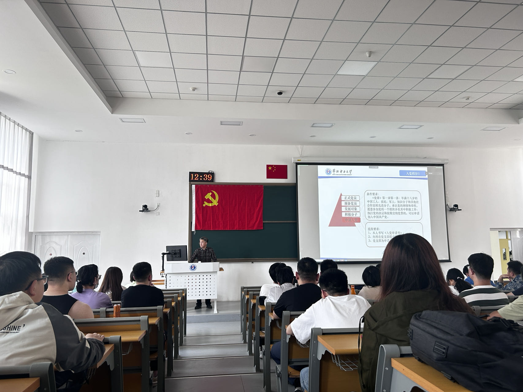 2023年5月10日中午,世界杯体育官方网站第55期入党积极分子培训班第三次党课在教一12阶举行。学院正处级组织员张宝良以“入党的规定和程序”为题,从“入党程序及要求、思想入党和组织入党、以实际行动向党组织靠拢”三方面来讲授党课,辅导员王倩参加了本次党课培训。