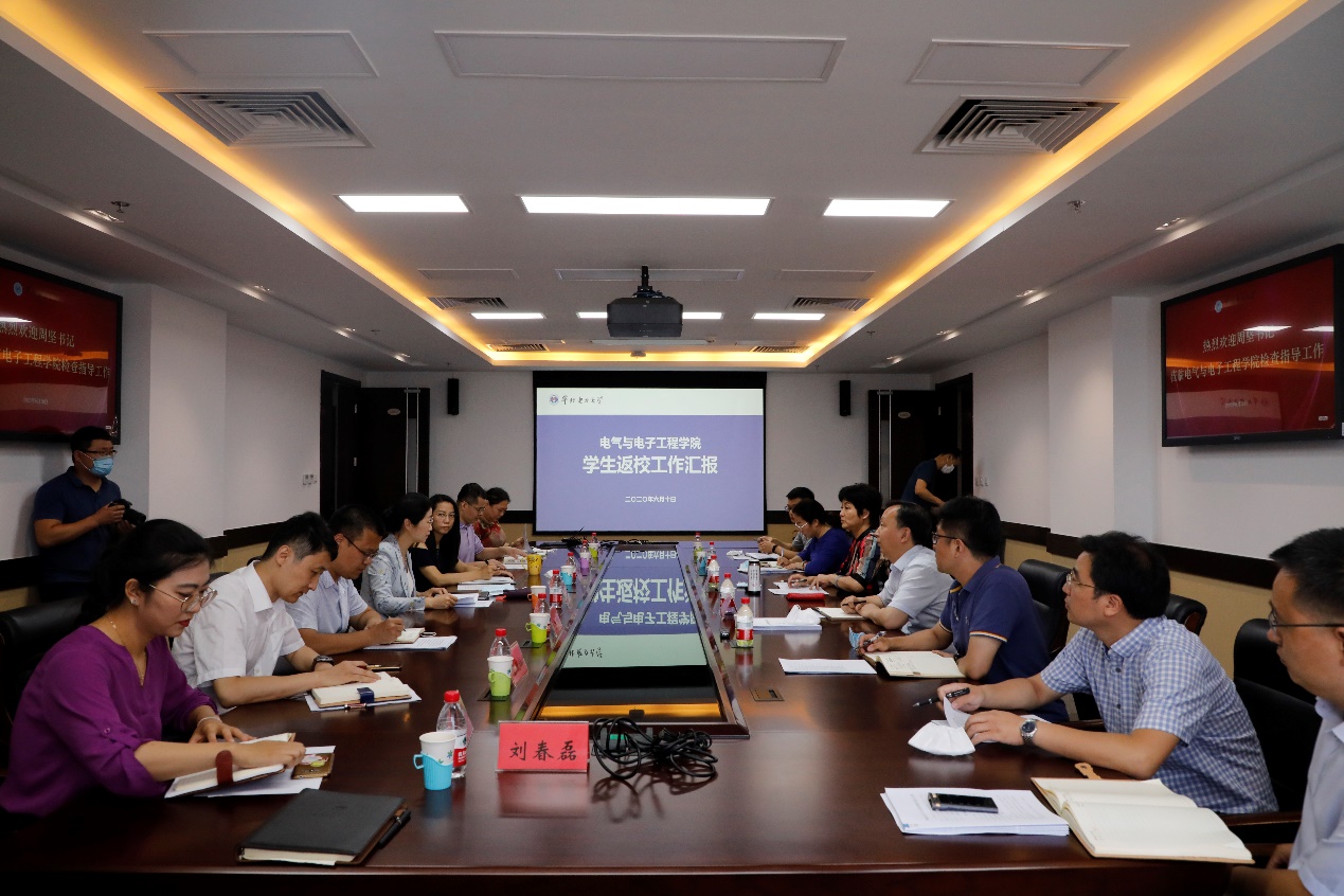周坚听取了学院党委书记卜春梅作的“电气学院毕业生和参与重大科研任务的全日制研究生返校工作”汇报,与学院班子成员、教师代表进行了座谈。